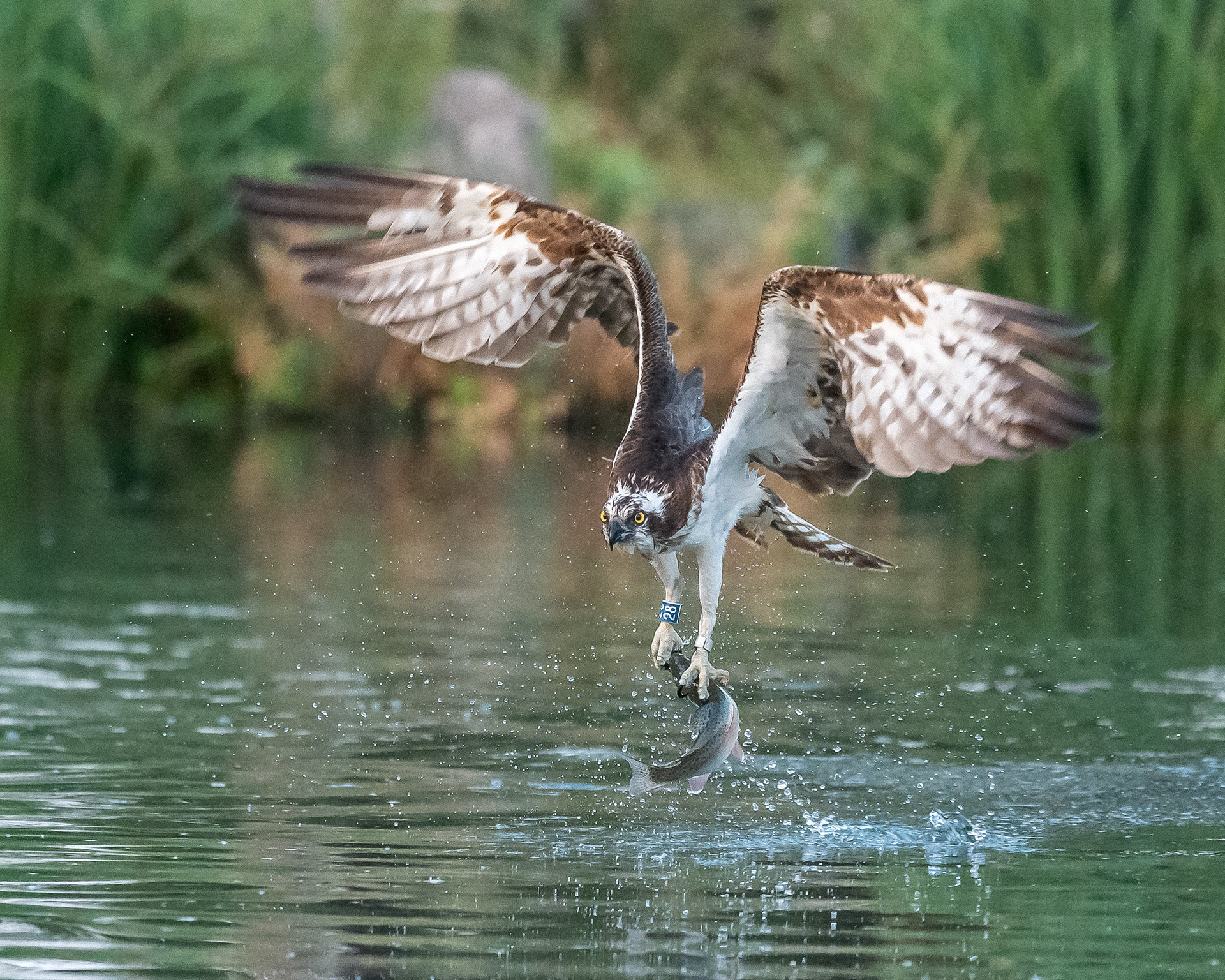 No way 30mins later and 28 is back again this time 28 does 2 dives abandoning the first one and then getting fish on 2nd attempt, Awesome display.